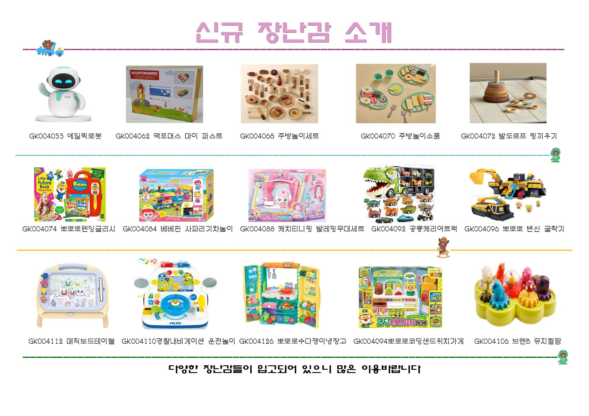 | 현재글 | 신규장난감 및 희망장난감 입고 안내 | 조*진 | 2025.10.16 | 1,257 | |
